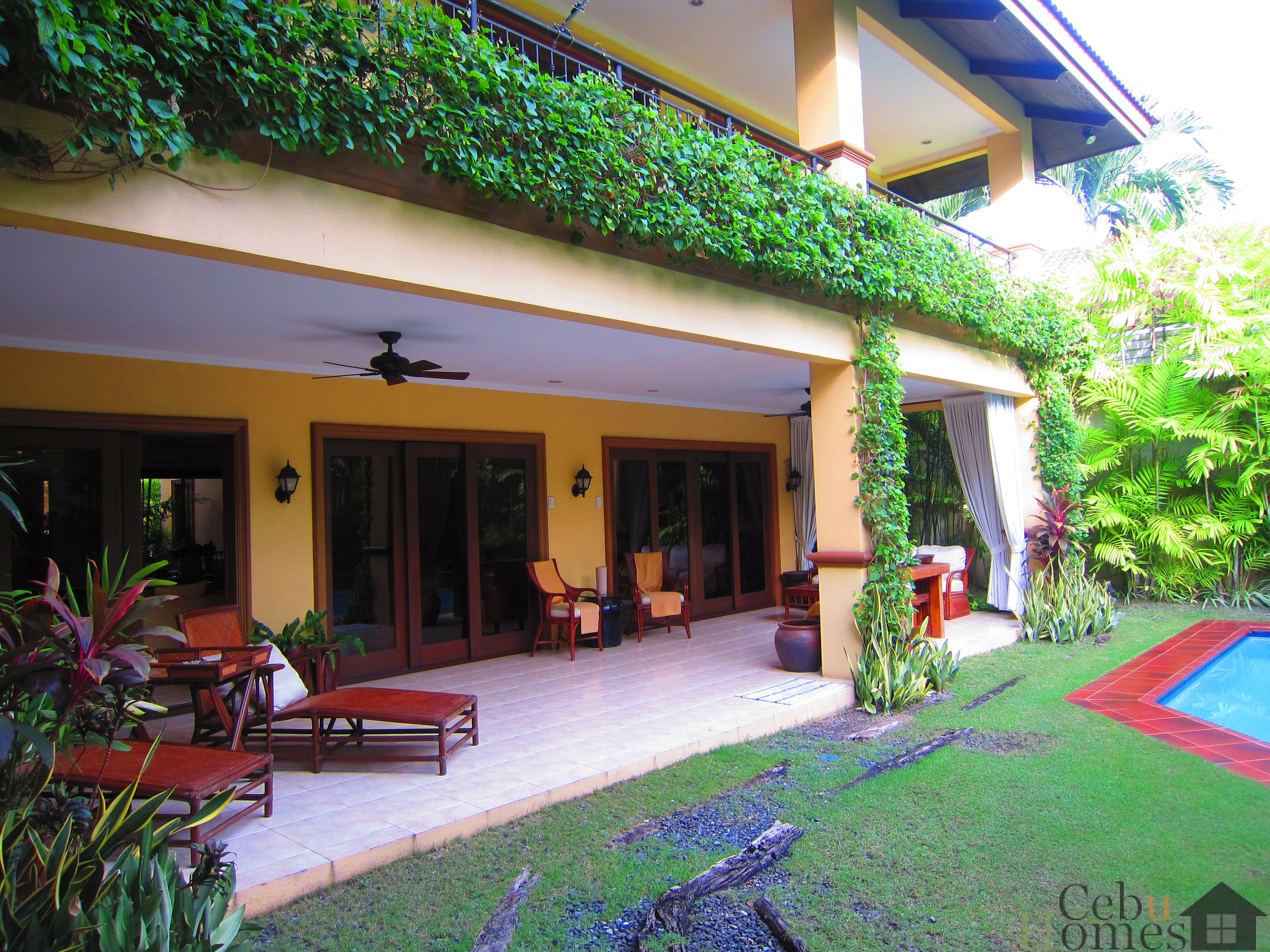 A modern four-bedroom house in Maria Luisa with a private pool and outdoor hangout area perfect for grilling. The spacious interiors include a large living room and dining area that comfortably seats eight people, ideal for entertaining. The generously sized kitchen is perfect for culinary enthusiasts. All four bedrooms are located on the second floor, each with its own en suite bathroom, ensuring privacy and convenience. With its sleek design and ample space, this home is perfect for those seeking comfort and luxury. Enjoy the serene outdoor area by the pool for relaxation or hosting gatherings.
