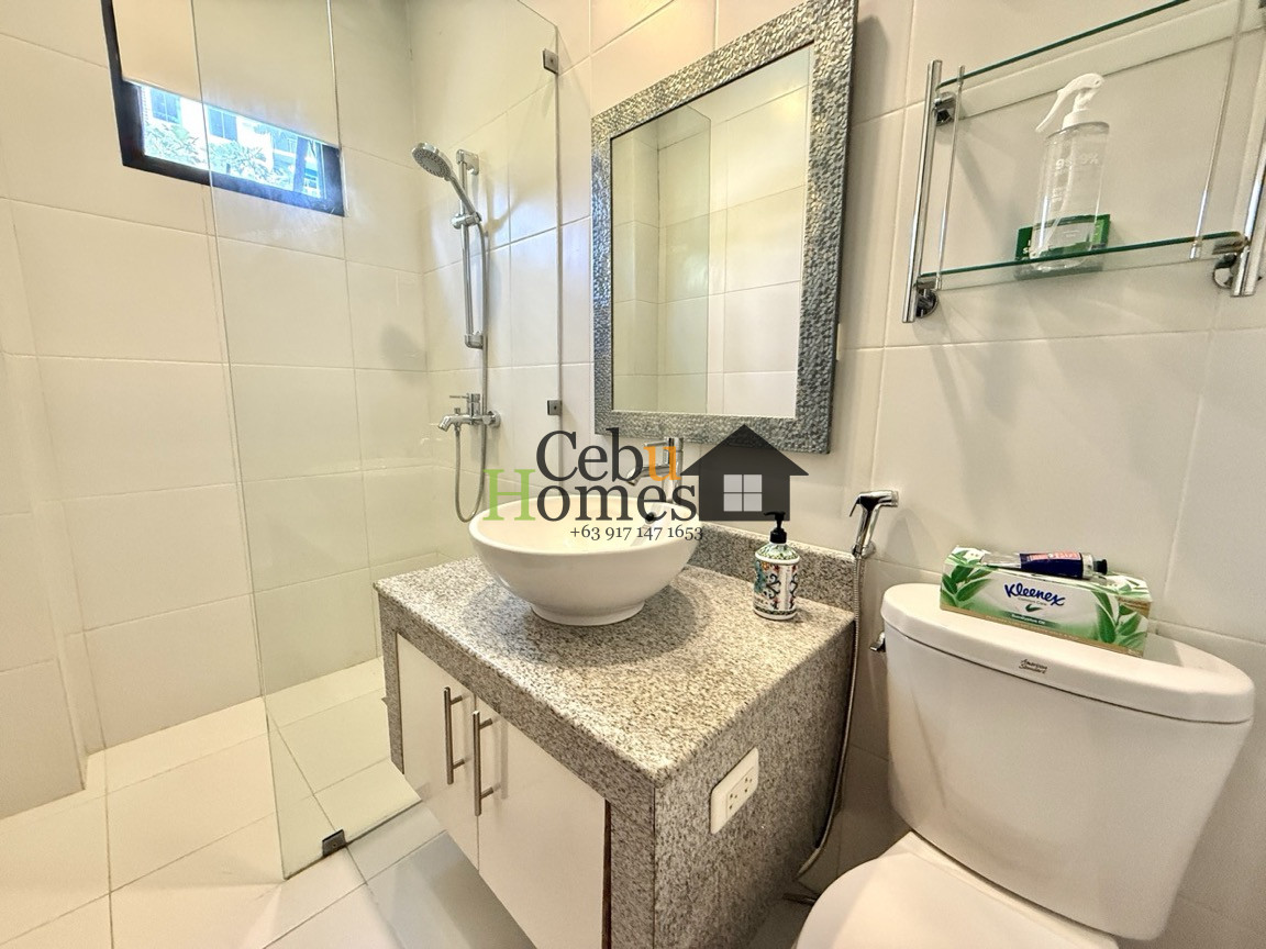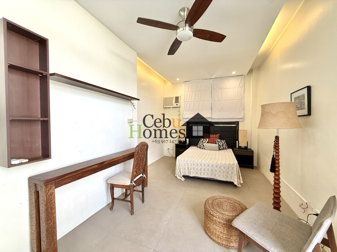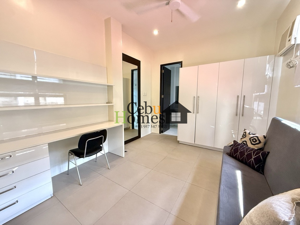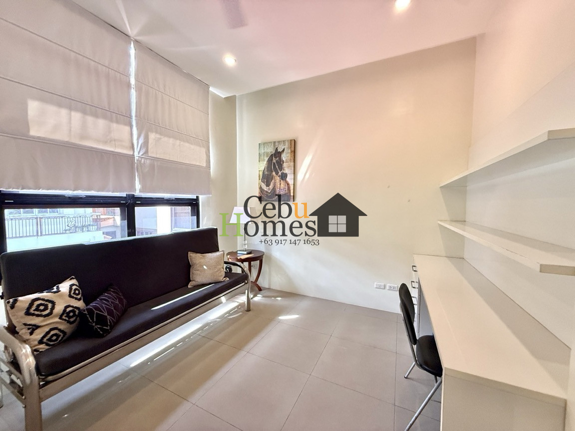 This modern 3-bedroom house for rent in Banilad Central offers a perfect blend of comfort and practicality in a prime location. While its exterior appears modest, the interior surprises with its spacious layout, featuring ample living and dining areas. The generously sized kitchen is designed for functionality and style, making it ideal for both daily use and entertaining. The ground floor includes a maid’s quarter with its own bathroom, conveniently connected to the laundry area, as well as a powder room for guests. The staircase is designed with senorita steps for ease and elegance, leading to the second floor where all three bedrooms are located. Each bedroom comes with its own en suite bathroom, and the master bedroom features a step-out balcony for a touch of luxury.